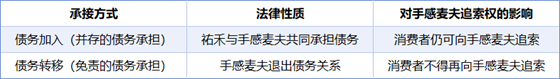 关键判断:祐禾公告中未明确表示“手感麦夫不再承担责任”,亦未取得消费者明示同意免除手感麦夫责任。因此,该行为应认定为债务加入,消费者对手感麦夫的追索权不因接受祐禾承接而丧失。