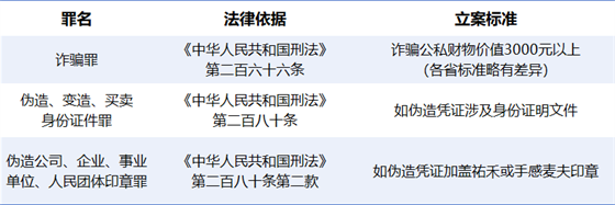如伪造凭证骗取消费金额达到刑事立案标准,可能构成以下罪名: