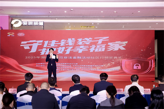 2025年11月28日晚,由中共湖南省委金融委员会办公室主办、湖南广播电视台爱晚频道等单位承办的2025年湖南省防范非法金融活动社区行颁奖典礼,在长沙市开福区方圆荟商场顺利举行。本系列活动以“守住钱袋子·护好幸福家”为主题,深入各个社区通过多元形式推动防范非法金融知识普及,湖南省委金融办副主任罗栋出席活动并致辞,强调了筑牢金融安全防线对保障民生福祉、维护社会稳定的重要意义。