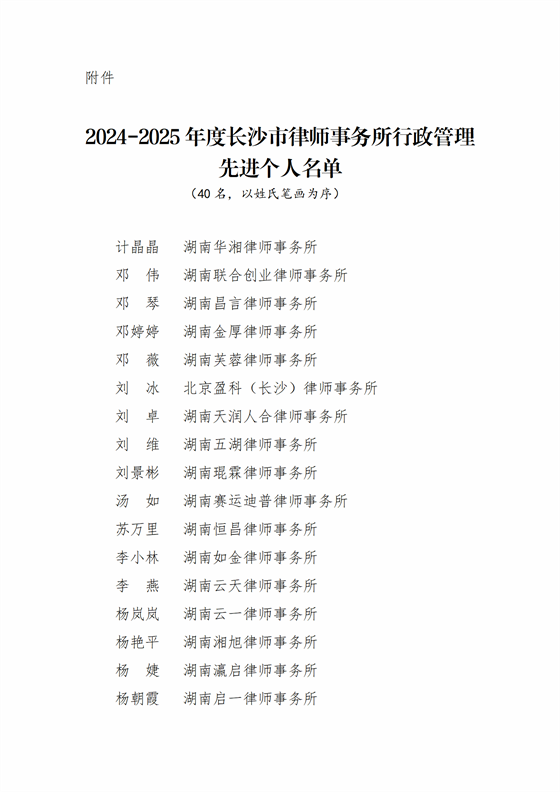 近日,长沙市律师协会发布2024-2025年度行业先进表彰公告,湖南通程律师事务所三位同志凭借扎实的履职表现与良好的行业口碑斩获殊荣:律所副主任、工会主席熊燕红获评“长沙市优秀律师”,对外交流与人才引进专门工作部部长、工会副主席裴一霖获评“长沙市优秀青年律师”,综合事务部部长夏婷获评“长沙市律师事务所行政管理先进个人”。