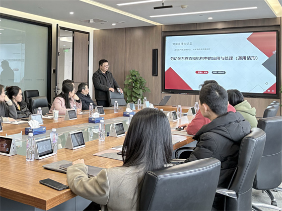为切实破解网络直播行业新业态劳动用工法律难题,帮助相关企业厘清合规边界、防范用工风险,3月31日,由湖南省网络直播协会联合通程律师事务所举办的“湖南直播大讲堂”第一课正式开讲,我所合伙人纪浩律师担任主讲嘉宾,聚焦直播机构劳动用工法律实务,吸引了省内众多直播行业企业代表到场参与。